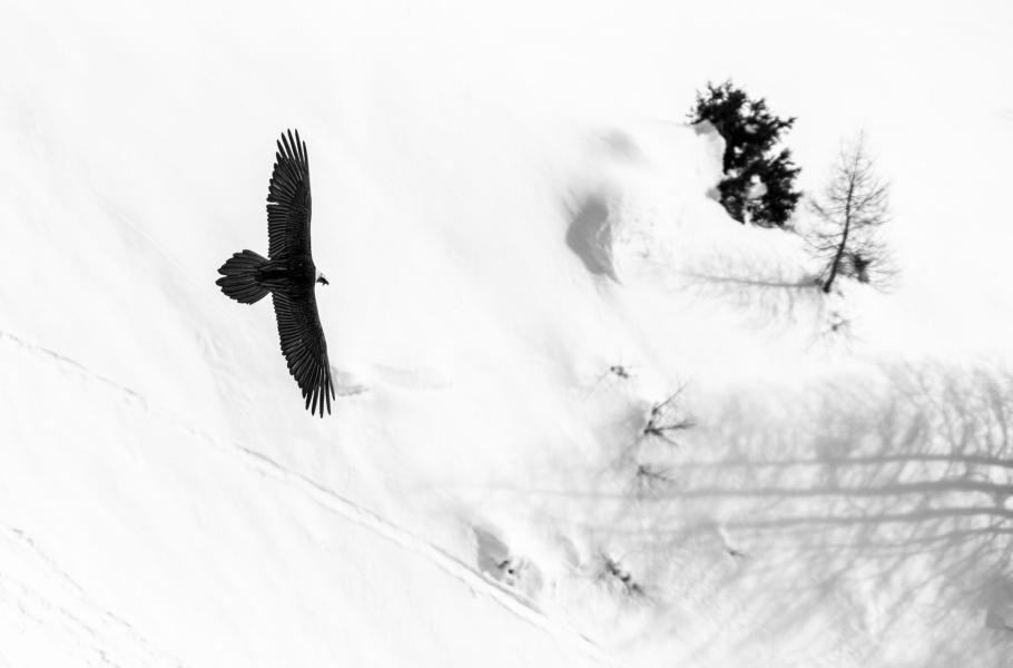 Orlosup bradatý ve svém království v Alpách.