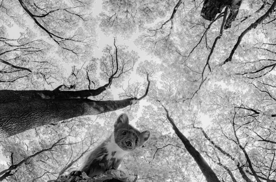 Při rozmísťování fotopastí v lese si Csaba Daróczi všiml, že vyhlédnutou oblast navštěvuje kuna. Políčil na ni proto GoPro kameru aktivovanou pohybem a po několika nezdarech zvědavou šelmu skutečně zvěčnil. (foto: CUPOTY, Csaba Daróczi)
