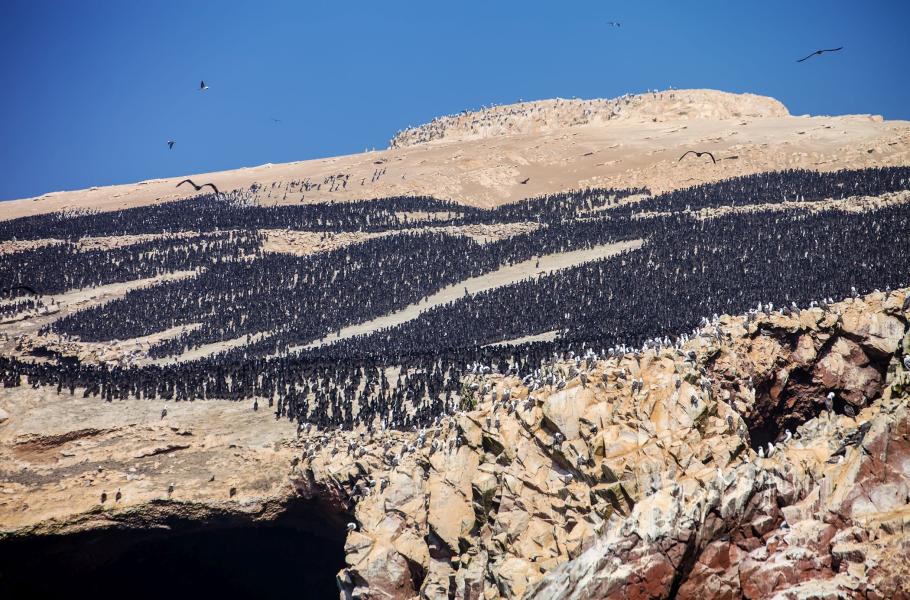 Asi po půlhodině plavby jsme na místě. Srdce rezervace tvoří tři větší skalnaté ostrovy, okolo je roztroušeno množství malých útesů. Pomalu kroužíme kolem vysokých skal, vstup přímo na ostrovy je přísně zakázán. Na velkých ostrovech se tísní neuvěřitelné množství ptáků, obrovskou masu tvoří především kormoráni guánoví (Phalacrocorax bougainvillii). Žijí ve velkých společenstvích a díky úžasné produkci guána byli vždy považováni za velmi cenné ptáky.