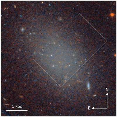 Přízračná trpasličí galaxie bez temné hmoty mate astronomy