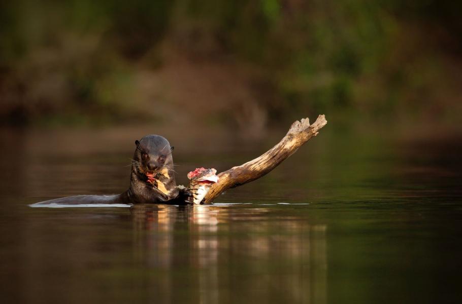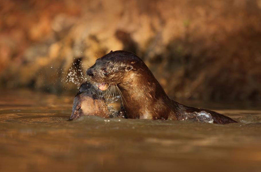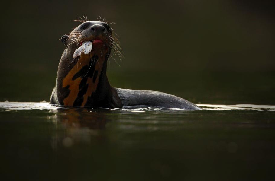 Vydry jsou jako lesklé hnědé přízraky. Jen na chvilku se objeví hřbet a po vteřině jej překryje kalná voda brazilské řeky, která se ne náhodou jmenuje Rio Negro, tedy Černá řeka