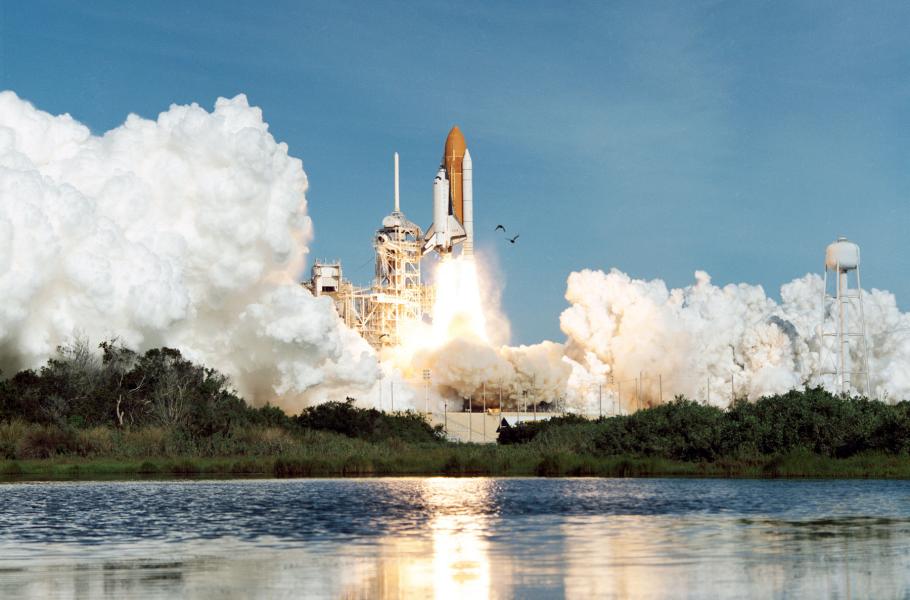 Start raketoplánu Columbia k misi STS-62 z Kennedyho vesmírného střediska (březen 1994).