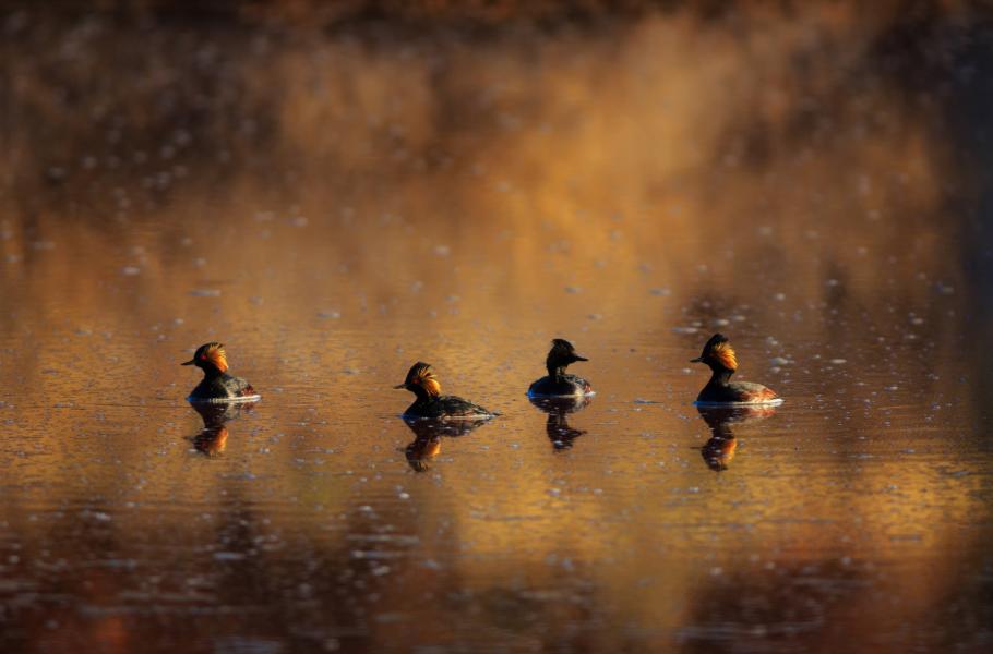 Dnes nás ale u málokterého rybníka vítá křik racků chechtavých, v jejichž koloniích můžeme hnízdící potápky černokrké pozorovat a být svědky fascinujícího toku, při němž potápky předvádějí řadu typických figur. Jejich hnízdiště bychom spočítali na prstech. Co se stalo s tímto krásným ptákem s nápadnými prodlouženými zlatožlutými pery po stranách hlavy?