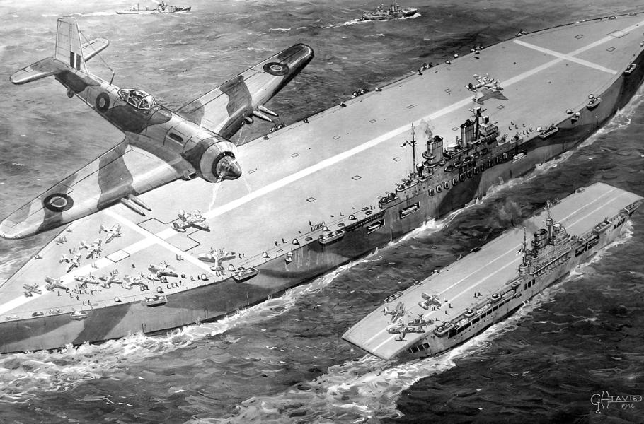 Umělecká představa letadlové lodi vyrobené z pykritu (vlevo) ukazuje její velikost v porovnání s klasickým nosičem. (ilustrace: Profimedia)