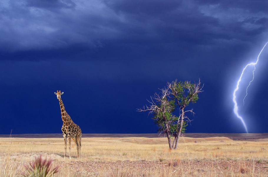 Žirafy mohou měřit téměř šest metrů. Obvykle žijí na afrických suchých pláních nebo savanách, kde často převyšují okolní prostředí. Znamená to, že se do žiraf strefí blesk častěji, než do dalších afrických zvířat?