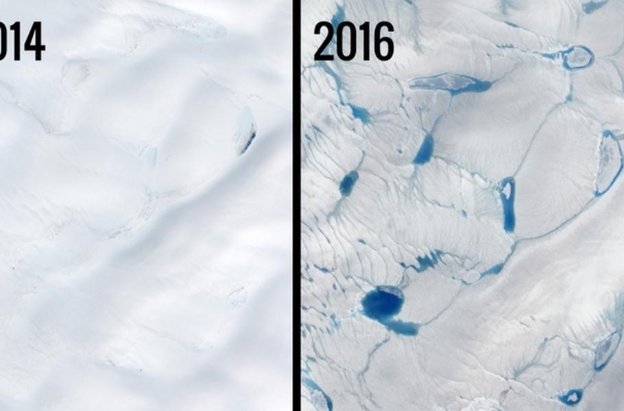 Rychlost pohybu a tání grónských ledovců se během poslední dekády výrazně zvýšila.