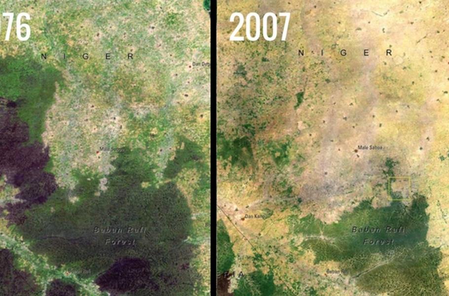 Družicové snímky ukazují mizející lesní porost z jižního okraje Sahary. Počet obyvatel se v této části Afriky za posledních 40 let zvýšil čtyřnásobně.