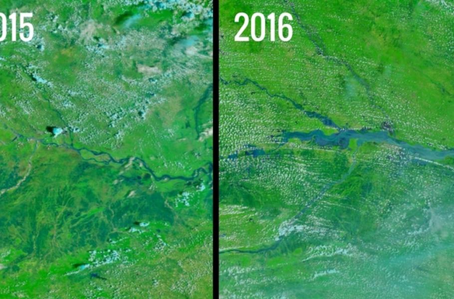 Mohutné monzunové deště způsobily v roce 2016 rozsáhlé záplavy v okolí řeky Gangy v centrální a východní Indii.
