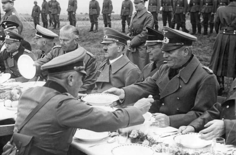Hitlerova návštěva v Sudetech 3. 10. 1938 – Konrád Henlein vpravo vedle Adolfa Hitlera, napravo od Henleina pak tehdejší vojenský velitel Sudet generál Keitel.