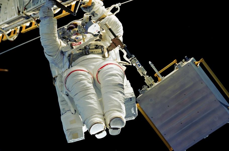 Letová specialistka Linda Godwinová během výstupu do otevřeného prostoru v rámci mise STS-64.