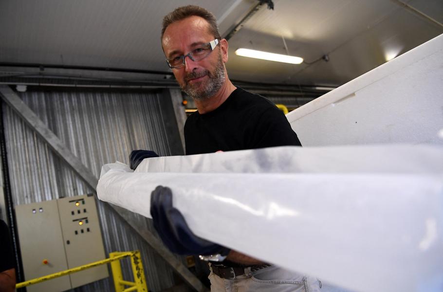 Ředitel francouzského Národního centra pro vědecký výzkum a vědecký koordinátor projektu Ice Memory Sanctuary Jerome Chappellaz s vzorkem ledu z bolivijské hory Illimani. (foto: Profimedia)