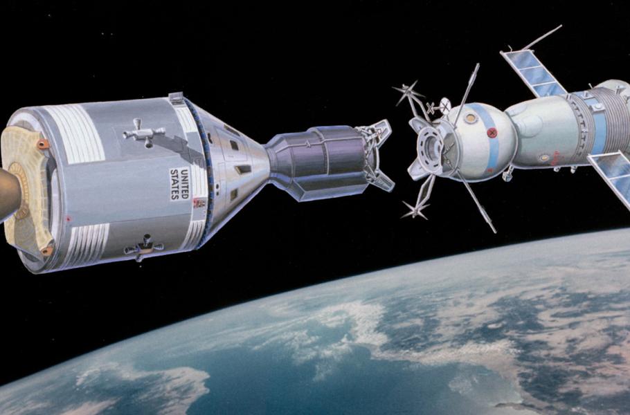 V červenci 1975 se uskutečnila první mezinárodní vesmírná mise: Na zemské orbitě se spojilo americké Apollo se sovětským Sojuzem. Projekt přitom probíhal v době, kdy ještě obě země nenavazovaly vzájemné vztahy právě snadno