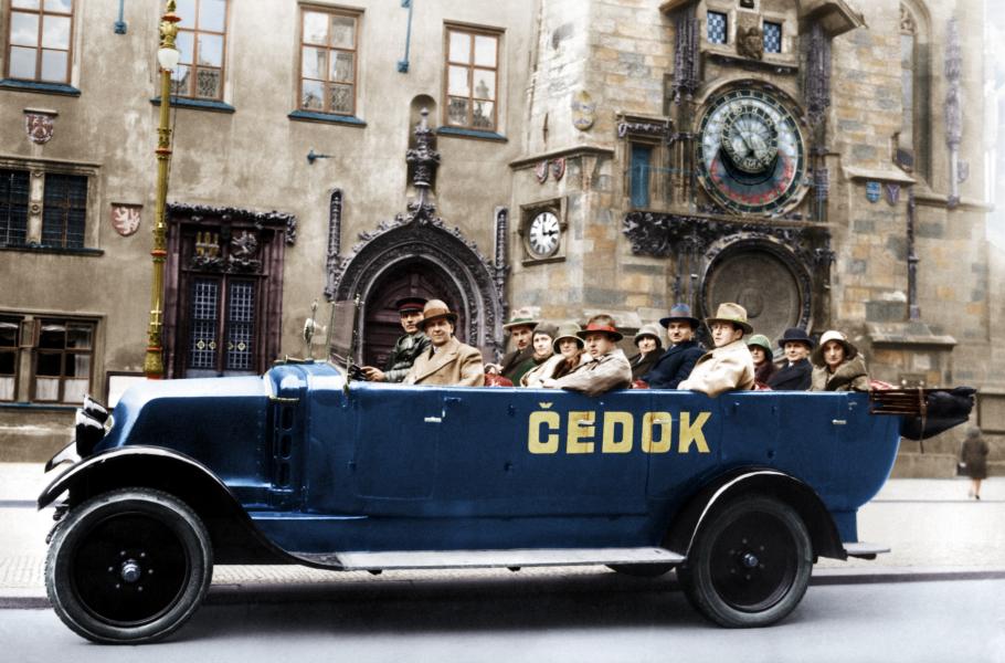 Na vyhlídkové jízdy Prahou získal Čedok v roce 1927 koncesi, ale již o rok dříve se prvních jízd zúčastnilo přes 3 200 osob. Turistické autobusy jezdily podle platného jízdního řádu v sezoně od dubna do září a podmínkou přidělení koncese bylo použití autokarů domácí výroby. Poměrně vysokou cenu jízdného 35 Kč (dnešní tisícovka!) měly vykompenzovat služby průvodce a zaplacené vstupy na památky.