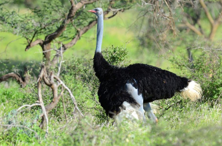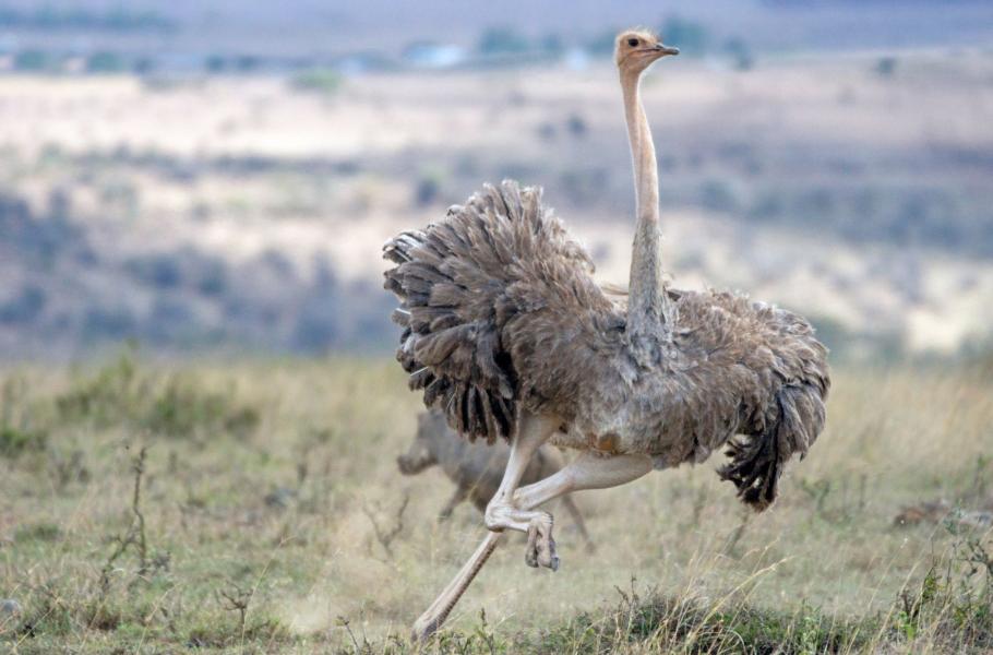 Pštros dvouprstý je skvělým běžcem. V péči o vejce se samci a samice střídají; tíha péče o vylíhlá mláďata padá z valné části na otce, i když samice mu v tom pomáhají. (foto: Shutterstock)