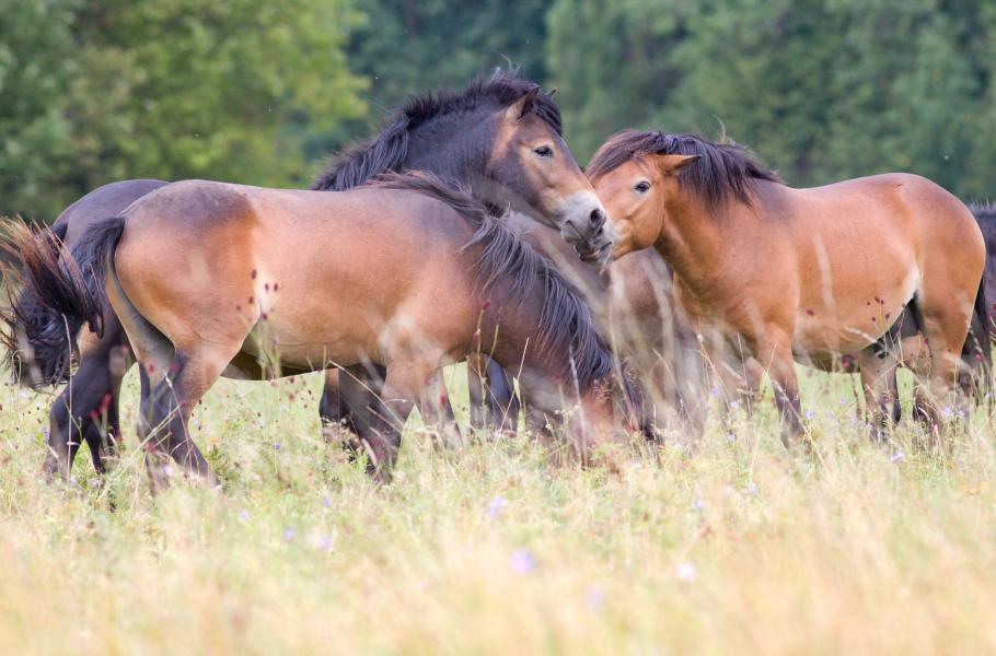 Koňská pastvina byla vyzdobena spíše temně červenými květy kakostů a krvavců totenů. Na nich jsem pozorovala kriticky ohrožené modrásky bahenní. Nad vysychajícími loukami poletovaly vlaštovky a k večeru se k nim přidaly i břehule. Z vysoké nepřehledné trávy dokonce vylétla bekasina otavní, a i když bylo léto, začala jako při toku křižovat oblohu: Prudké vzlety vzhůru k nebi a následné „pády“ dolů, při nichž se rozvibrují pera, a ozve se mečivý zvuk. Právě pro něj se bekasině docela trefně přezdívá „nebeská koza“.