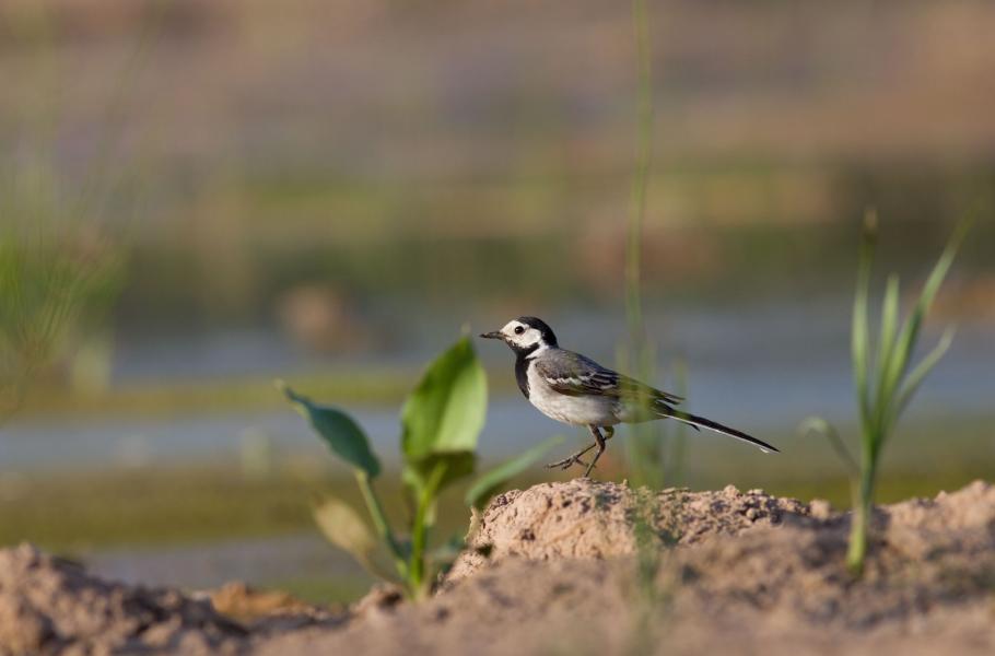 Svítá. Ve skrytu pod fotostanem popíjím ranní kávu. Zkouším fotografické štěstí, ale úmorná dlouhotrvající vedra se podepsala i na Slavíkovském ptačníku. Ačkoli ale trochu vyschnul, přesto v něm bylo vody stále dost. Na jejím rozhraní s popraskaným bahnem již od rozbřesku pobíhala rodina konipasů bílých (Motacilla alba). Rodičovský pár a tři „odrostlíci“ lovili na mělčině drobný vodní hmyz, občas vyskočili a lapili i něco poletujícího nad mělčinou. Poněvadž paprsky vycházejícího slunce ještě nenabraly na síle, leskly se na listech žabníků jitrocelových a dalších vodních rostlin kapičky rosy. Mohla jsem si tak dosyta vychutnat hru světla a odlesků a pokusit se je zakomponovat do fotografií konipasů.