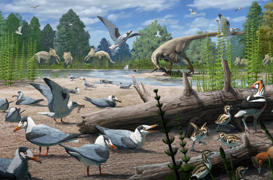Ptáci hnízdili v Arktidě už za dob dinosaurů, ukazuje převratná studie. (ilustrace: University of Alaska, Gabriel Ugueto, CC BY-SA 4.0)