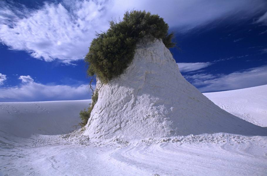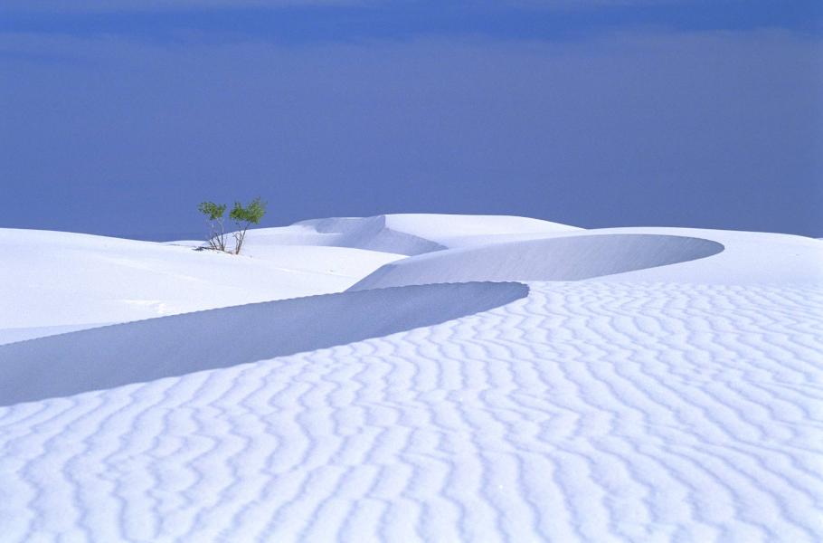 Ve White Sands, na bílých sádrovcových dunách, si člověk připadá jako někde v horách. Pouze vysoké teploty, kaktusy, juky a zeleně olistěné osiky svědčí o tom, že jde skutečně o poušť