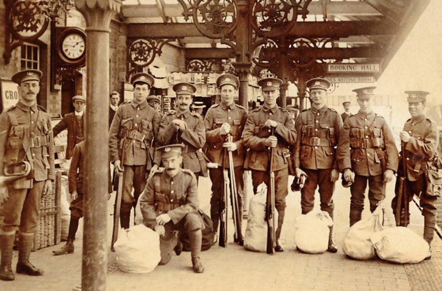 Příslušníci praporu Norfolkského pluku, pod nějž spadala i rota Sandringhamských před odjezdem na frontu. (foto: Imperial War Museum, CC0)
