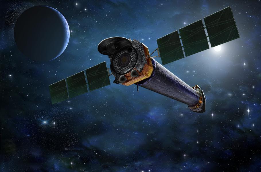 Rentgenová observatoř Chandra patří mezi největší projekty NASA. Ve vesmíru pracuje již od roku 1999. (ilustrace: NASA/CXC/SAO & J. Vaughan, CC BY-SA 4.0)
