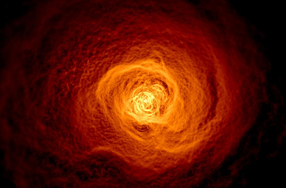 Přibližně 240 milionů světelných let daleko leží Kupa galaxií v Perseu. Tato obří skupina tisíců galaxií měří na šířku okolo 11 milionů světelných let. Podobně jako i jiné kupy galaxií je i většina pozorovatelné hmoty v Kupě ve formě plynu. Plyn při teplotách několika desítek miliónů stupňů jasně rentgenově září a vytváří působivé vlny, připomínající ohnivé megatsunami. Vlny horkého plynu v Kupě galaxií v Perseu měří až 200 tisíc světelných let, což je zhruba dvakrát více než kolik měří celá galaxie Mléčná dráha.