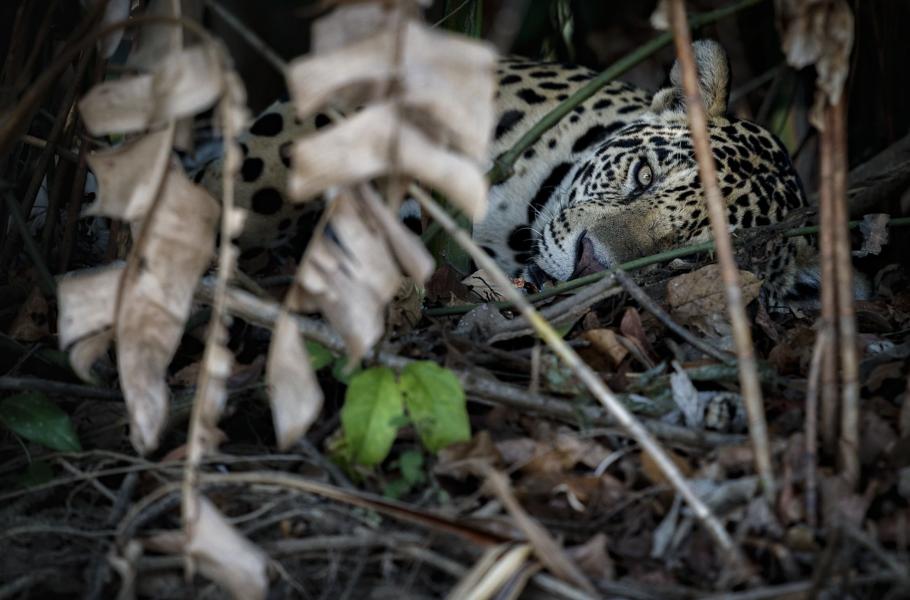 Jedna z mých nejoblíbenějších fotografií jaguára, která nejen zachycuje samotné zvíře, ale i jeho přirozené prostředí.