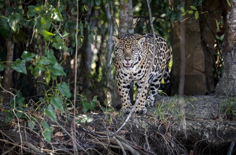 V oblastech mokřadů jako je Pantanal nebo venezuelské Llanos se u jaguárů během posledních pár let vyvinula neobyčejná potravní specializace. Zejména samci totiž s oblibou číhají na nebezpečnou kořist – zubaté kajmany. Takový lov na kajmana, nebo alespoň pokus o něj, můžete s trochou štěstí vidět hlavně koncem léta. Tehdy hladina vody v řekách klesá na minimální úroveň a jaguáři si na vyšších březích zřizují dokonalé pozorovatelny, z nichž nad kajmanem získávají výhodu díky momentu překvapení a možnosti zaútočit na oběť z pro ně výhodné pozice. Já měl prozatím štěstí jen na pokusy, úspěšně ulovený kajman by byl z pohledu fotografa velmi vítanou nadstavbou.