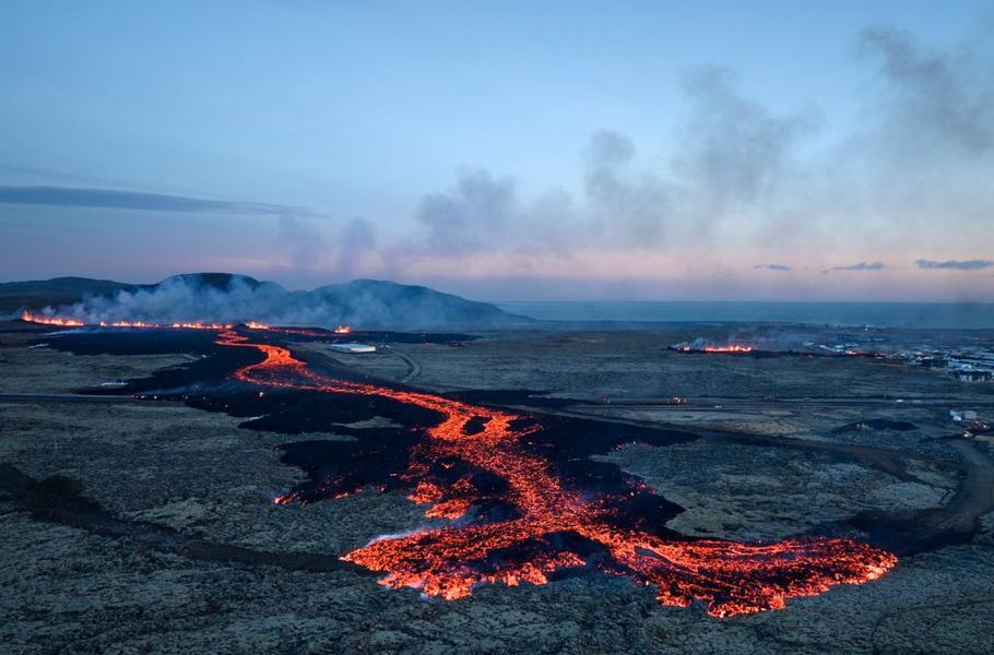 Podle odborníků ale 800 let klidu na Reykjaneském hřbetu právě skončilo. Během méně než tří let zde došlo k pěti podstatným vulkanickým erupcím. Předposlední z nich se odehrála v polovině loňského prosince ve vulkanické oblasti Sundhnúkur, severně od přístavu Grindavík a jen 42 kilometrů od Reykjavíku, kde byly viditelné fontány lávy stříkající do výšky až 100 metrů z vulkanické trhliny.