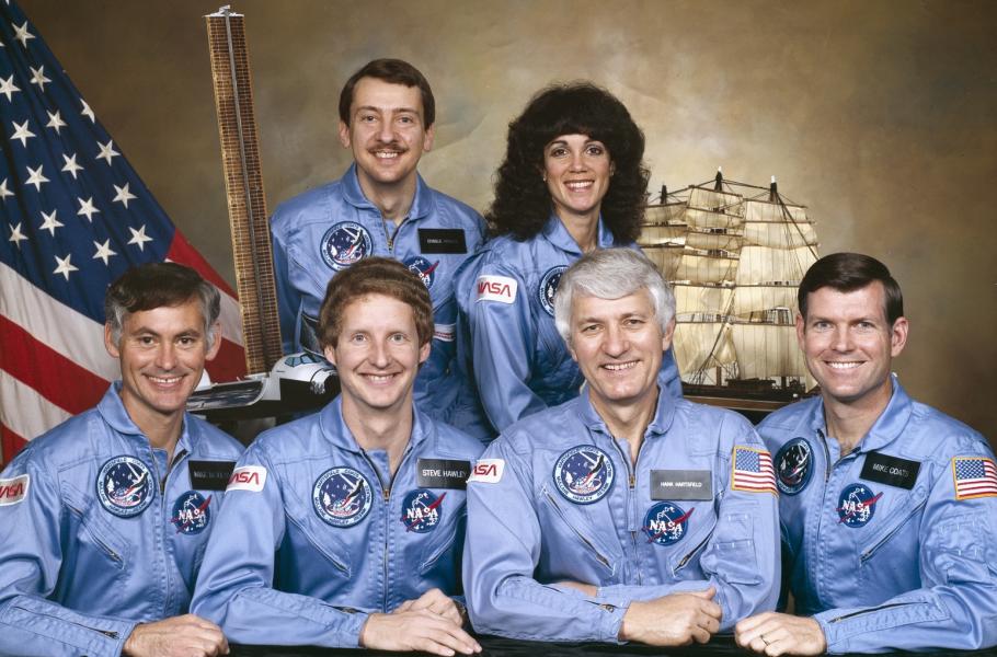 Horní řada (zleva): Walker, Resniková; spodní řada (zleva): Mullane, Hawley, Hartsfield a Coats.