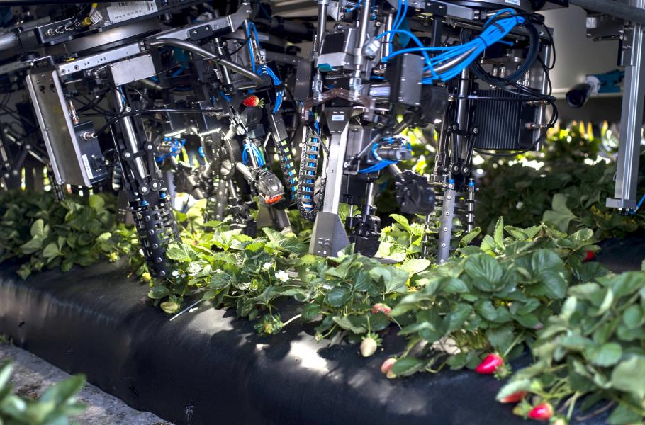 Na každý jahodník mají sběrači zhruba deset sekund, během nichž musejí mezi listy objevit zralé plody, jemně je ukroutit od stonků a uložit do plastových košíků. Tento postup přitom opakují celé dny až do úmoru, protože pokud trochu poleví, hrozí, že se sklizeň začne kazit. Během únorového odpoledne jich na polích jahodové farmy, s rozlohou zhruba 454 fotbalových hřišť, pracuje tucet: Nad rostlinami ohýbají záda stejně, jako to lidé dělali odjakživa. Nedaleko se však již testuje jejich automatizovaná konkurence, jež podle inženýrů v následujících letech rukodělnou sílu zcela nahradí.