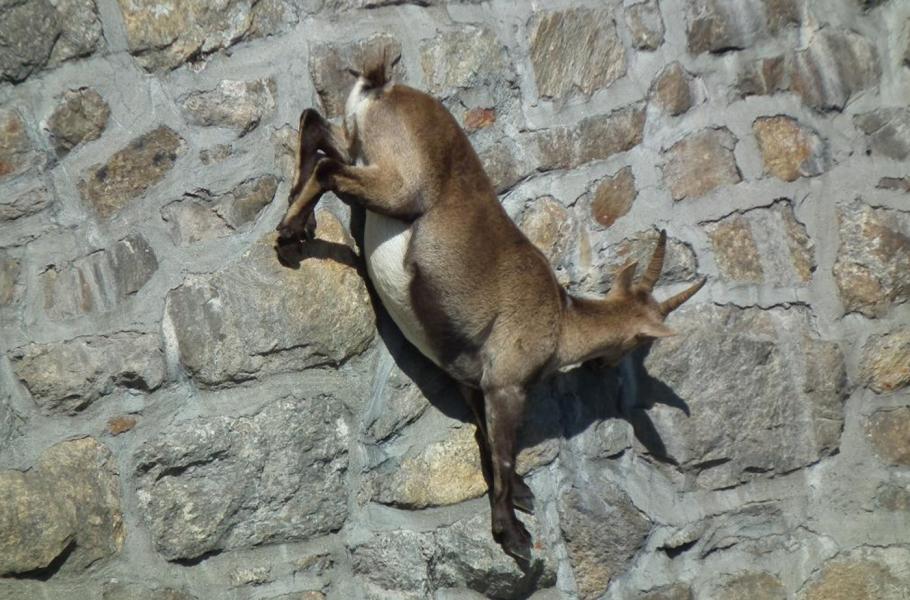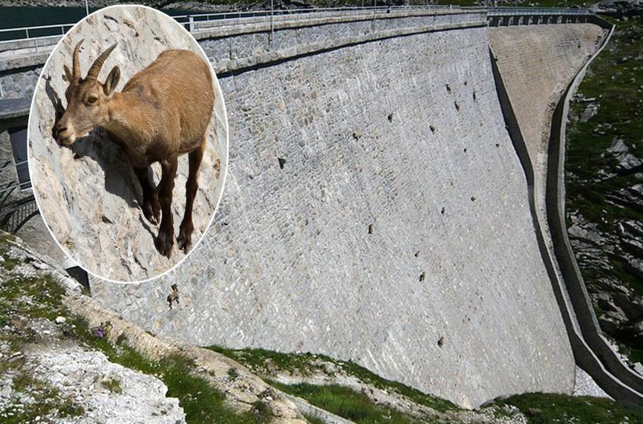 Skupina kozorožců horských či alpských (Capra ibex) se po téměř vertikálním 50 metrů vysokém povrchu přehrady Cingino, která se nachází poblíž švýcarských hranic, pohybuje s neuvěřitelnou lehkostí a obratností. Odborníci se domnívají, že divoké kozy na přehradu chodí proto, aby olizovaly kamenný povrch, ze kterého získávají potřebné soli a minerály. Stádo tak denně riskuje – jediné špatné našlápnutí by znamenalo v podstatě jistou smrt. Přesto se odvážná zvířata na šikmou přehradu vracejí den co den.