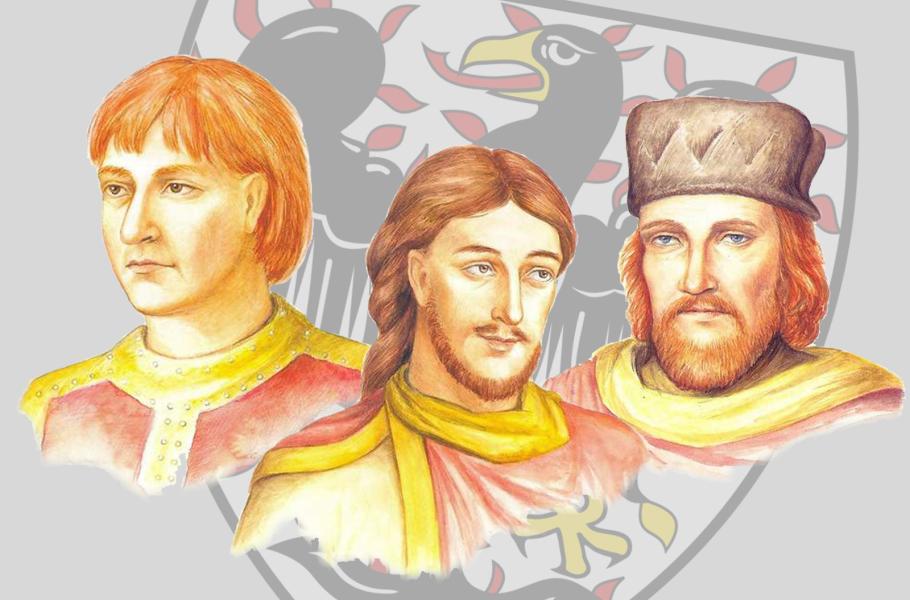 Knížata z rodu Přemyslovců - Boleslav I. Ukrutný (asi 935–972), Boleslav II. Pobožný (asi 972–999) a Boleslav III. (asi 965–1037).