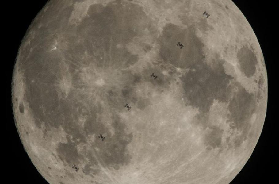 Snímků Mezinárodní vesmírné stanice tranzitující přes měsíční kotouč existuje bezpočet. Na počátku prosince se ale podařilo zachytit tranzit ISS přes kotouč tzv. superúplňku. V tento den našeho kosmického souseda od Země dělilo 357 492 km.