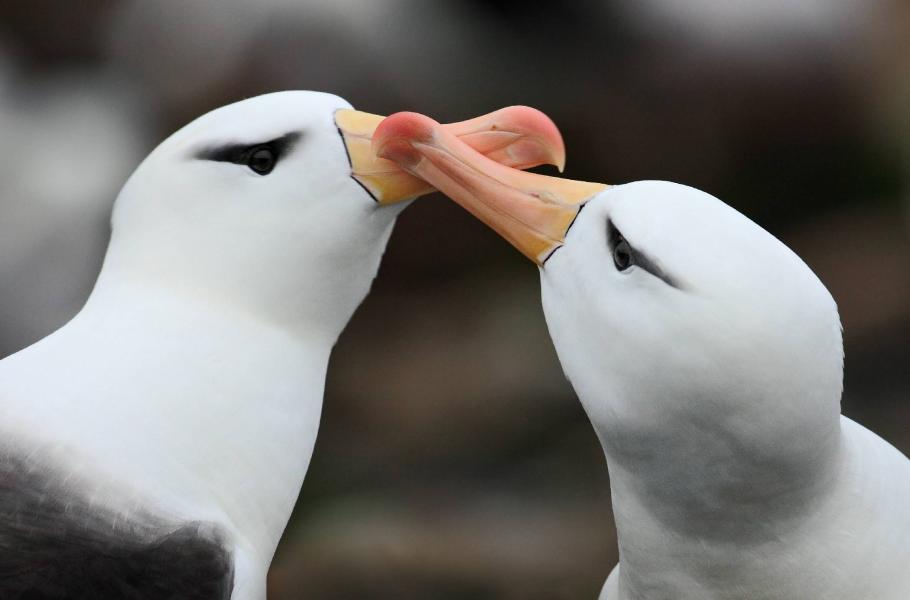 Během času stráveného na útesu jsme byli s Bohdanem svědky projevování náklonnosti mezi páry albatrosů, které jsou pro tyto ptáky velmi typické. Když se albatrosi vracejí z moře, provází jejich přílet k hnízdům bouřlivé volání, podle nějž se poznávají se svými partnery. Ihned po dosednutí začnou roztahovat křídla na uvítanou a tím to nekončí. Přiblíží se k sobě, aby do sebe začali zlehounka cinkat zobáky.