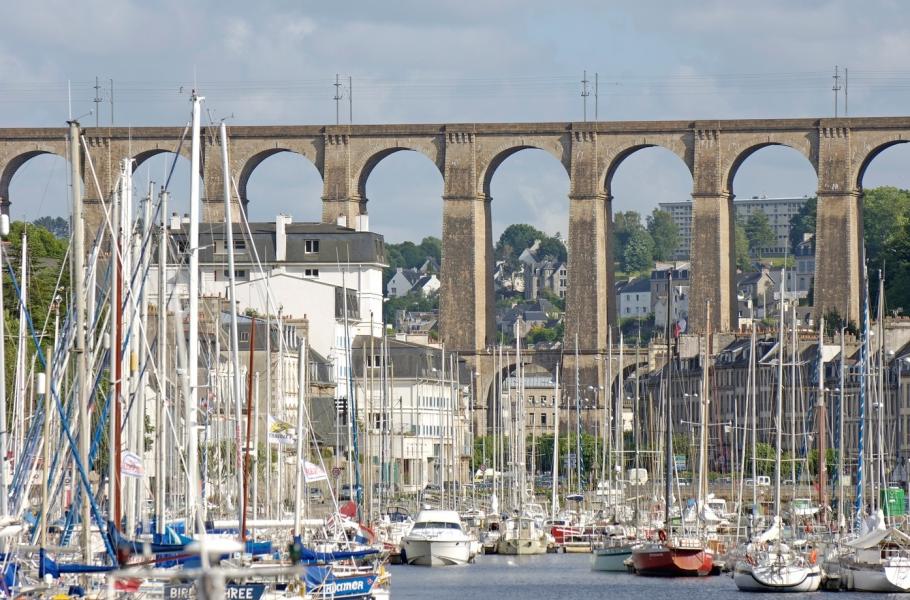 Viadukt Port-Launay nebo také viadukt Guilly-Glas je 375 metrů dlouhý a 55 metrů vysoký most nad řekou Aulne. Viadukt je dílem čtveřice francouzských architektů a jeho výstavba začala v roce 1864. Do provozu byl tento dvanáctiobloukový viadukt uvedený o dva roky později. K jeho stavbě byl použitý kámen ze 110 kilometrů vzdáleného žulového lomu v Rostrenenu a většina materiálu potřebného k jeho stavbě byla na místo dopravena po řece. (foto: Profimedia)