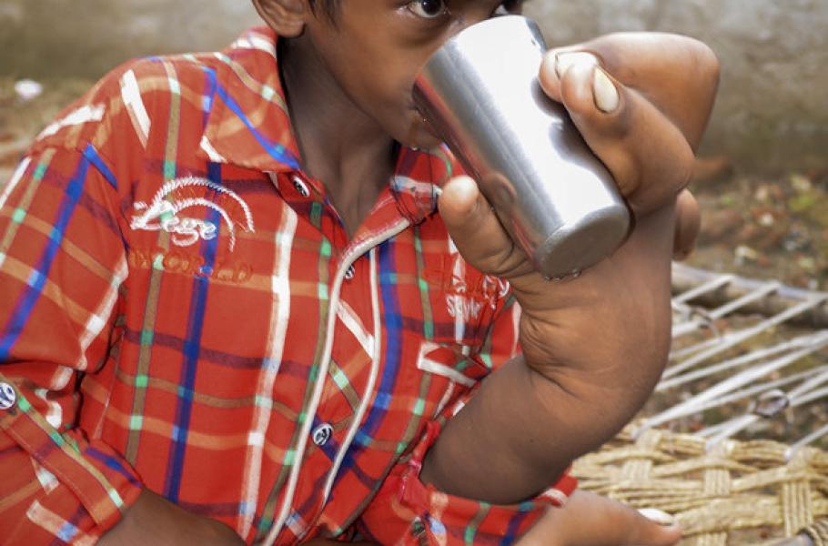 Ruce na obtíž: Osmiletý Ind má ruce, které váží 8 kilogramů