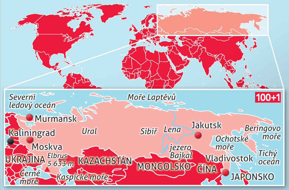 Rozloha: 17 098 242 km2, největší země světa, srovnatelně velká jako například USA a Austrálie dohromady