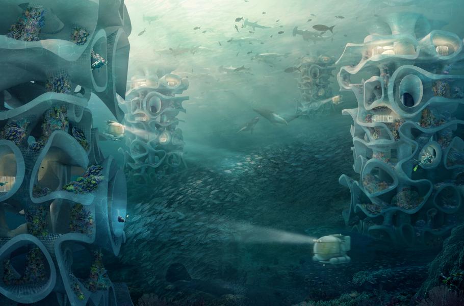 Předpokládá se, že do roku 2050 by kvůli kyselé vodě mohlo z oceánů zmizet až padesát procent korálů. Mrakodrapy znovuzrození je sice nedokážou nahradit, ale mají přispět k jejich opětovnému ozdravení. Jedná se o ekologické struktury podporující biodiverzitu, jež zároveň pomáhají vodu zbavovat oxidu uhličitého. (zdroj: Skyscraper Competition)