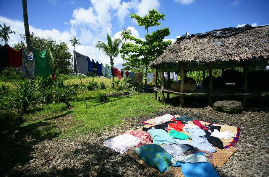Na ostrově zůstávají odemčené domy i auta. Většinou ani není co zamknout. Tradiční samojské obydlí, takzvané fale, je dřevený domeček bez pevných stěn, s ručně vyráběnými vytahovacími rohožemi mezi nosnými kůly. Ty se na noc stáhnou a ráno zase vytáhnou. Dnes rohože často nahrazuje igelitová plachta a tradiční doškové střechy vlnitý plech. My jsme se ubytovali v jednom z nich, a to přímo na pláži. Z postele jsme viděli na oceán, za přílivu byla voda metr od vchodu. Když foukal vítr, na střechu nám bubnovaly palmové listy. Když pršelo, byl to pěkný rachot, protože špička doškové střechy byla z vlnitého plechu.