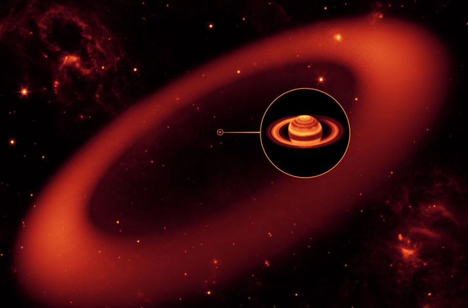 Z pozorování v infračerveném záření vyplývá, že Saturn je i s prstenci obklopen tlustým řídkým prachovým prstencem, který se rozprostírá do vzdálenosti 50 až 100 průměrů planety a dosahuje tloušťky asi 20 průměrů Saturnu.