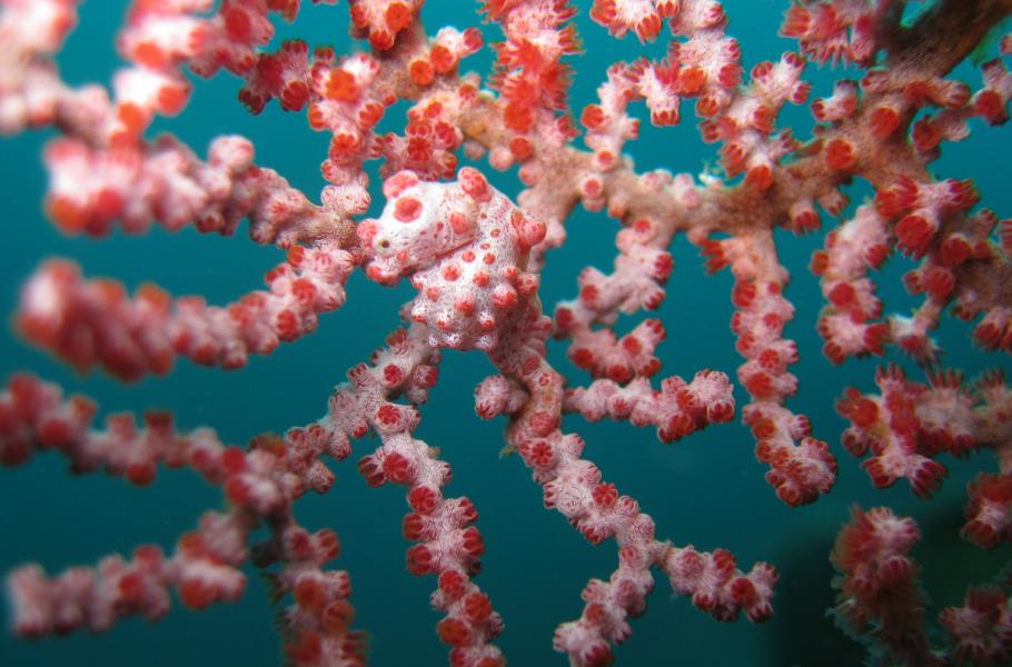 S rozměry nedosahujícími ani 3 cm patří koníček bradavičnatý mezi nejmenší druhy mořských koníků. Čelisti má spojené, a potravu proto nasává trubicovitým otvorem v ústech. Žije převážně v okolí mořských trav či měkkých korálů, jejichž vzhled díky pozvolné evoluci převzal a dovede se v nich mistrně maskovat. Nejvíc se rozšířil ve vodách jihovýchodní Asie a obvykle se pohybuje v hloubkách od 10 do 40 metrů. (foto: Shutterstock)