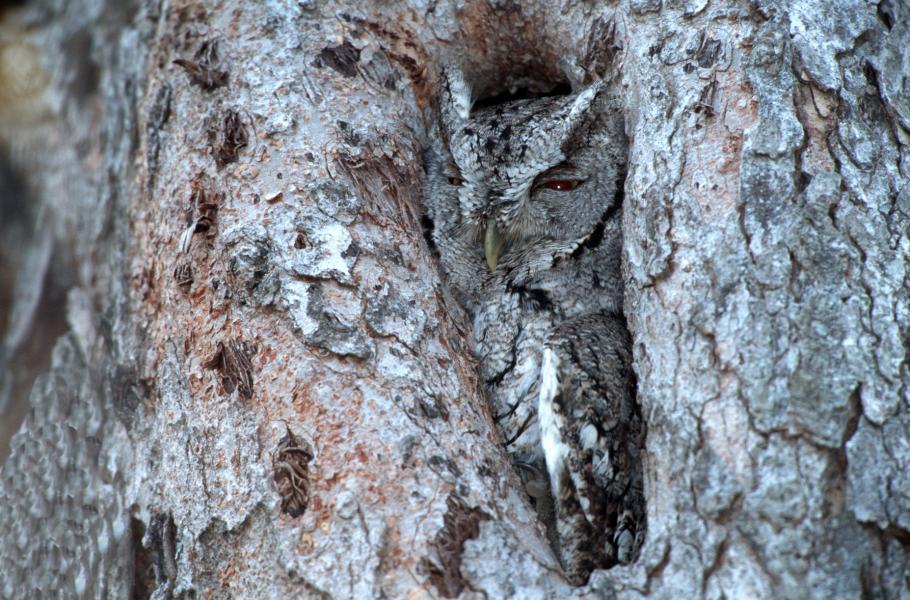 Výrečka amerického, v dospělosti dorůstajícího až 25 cm, můžete spatřit ve dvou barevných variantách – v odstínech pálených tašek a šedi. V závislosti na peří si pak hledá útočiště v lesech, parcích a obecně zalesněných oblastech, kde ladí s kůrou stromů. Výrečci loví hlavně v noci, zatímco přes den odpočívají a skrývají se v různých dutinách či proděravělých kmenech. Živí se převážně drobnými savci, ale nepohrdnou ani menšími ptáky a holdují také hmyzu. (foto: Shutterstock)