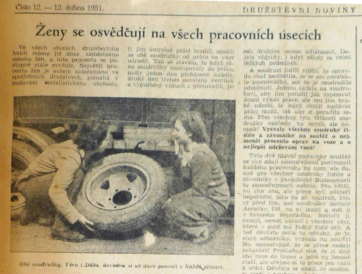 „Dnes už bych bez továrny nemohla být,“ sdělila časopisu Vlasta Růžena Bičišťáková a stejné nadšení z práce se odráželo v usměvavých tvářích mnoha dělnic na plakátech a fotografiích stalinistického Československa. Být spokojenou ženou tehdy znamenalo nosit montérky, být umazaná od oleje a vykonávat fyzicky náročnou práci