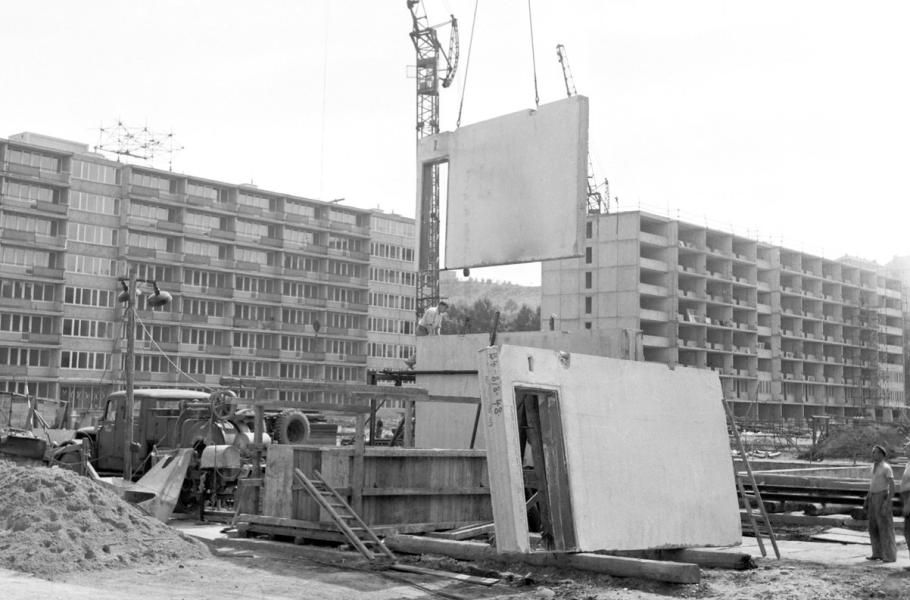 Stavba experimentálního sídliště v Praze-Karlíně, na Invalidovně v září 1962. (foto: Profimedia/ČTK, Bedřich Krejčí)