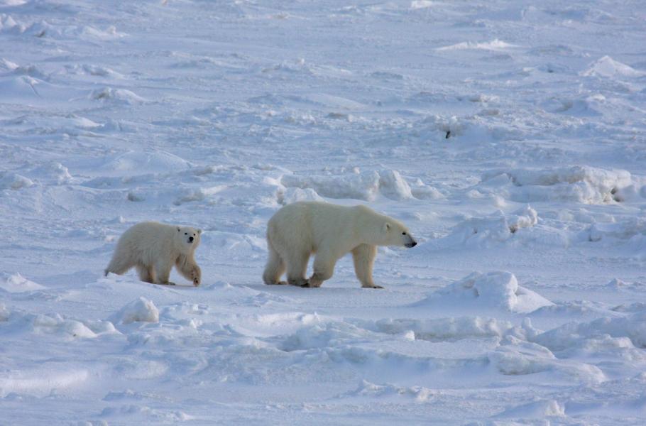„Medvědi grizzly jsou novým prvkem na scéně, konkurence a potenciální predátoři polárních medvědů žijících v této oblasti,“ říká Robert Rockwell z City University v New Yorku. „Poprvé jsme medvěda grizzly zahlédli v srpnu roku 2008, když jsme letěli nad kanadským národním parkem Wapusk a počítali liščí nory.“