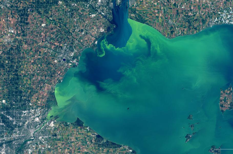 Severoamerické Erijské jezero zezelenalo: Přemohl ho vodní květ