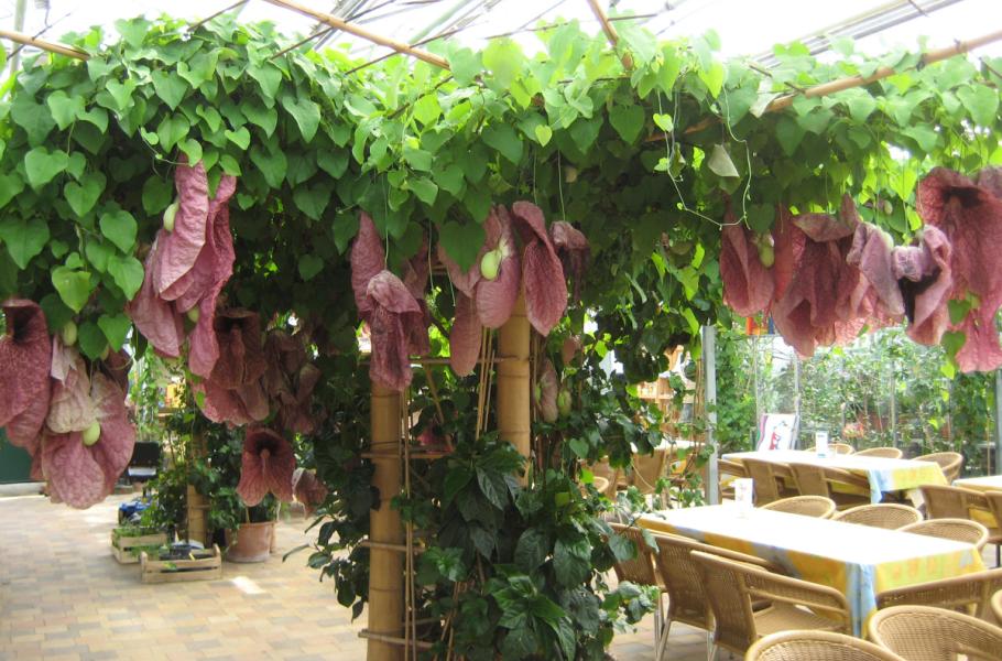 Aristolochia gigantea neboli podražec obrovský pochází z Jižní Ameriky, ale pěstuje se jako okrasná dřevnatějící liána v dalších tropických a subtropických oblastech.