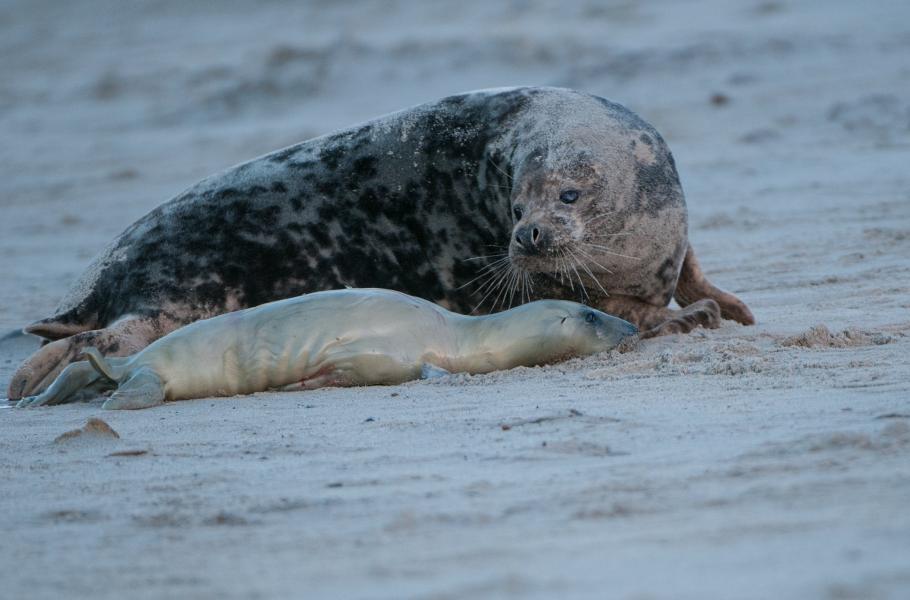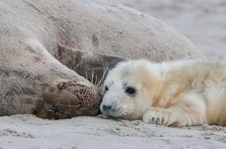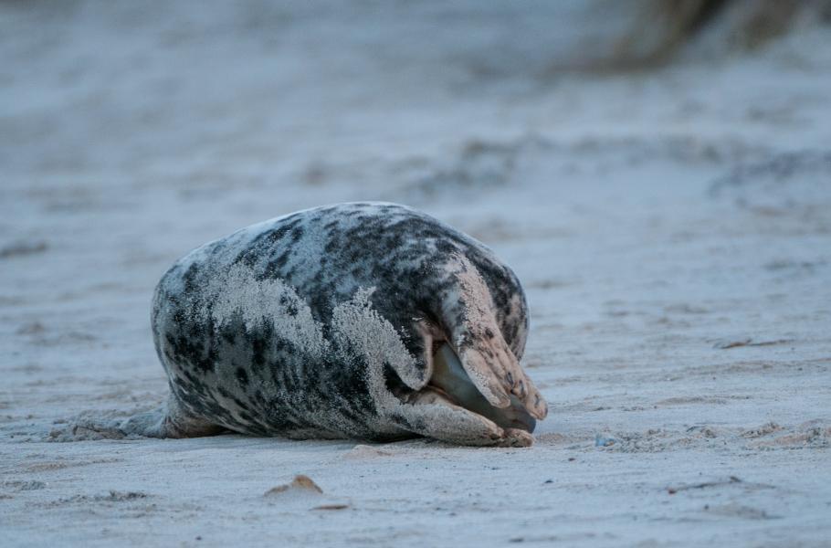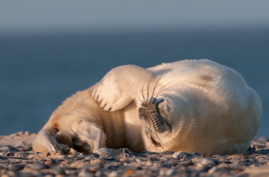 Naše nadšení při spatření prvních ploutvonožců nezná mezí, protože pro nás všechny tři jde o premiéru. Nikdo z nás ještě neviděl tyto savce ve volné přírodě, a tak nevíme, kam se dívat dřív. Kulisu dokonalosti doplňují některé druhy bahňáků a všudypřítomný křik velkých racků. V době kolem vánoc prý samice tady na ostrově po jedenáctiměsíční březosti rodí svá mláďata. Proto se při večerním návratu na Helgoland už těšíme se na zítřek. Třeba budeme mít kus toho tolik potřebného štěstí.