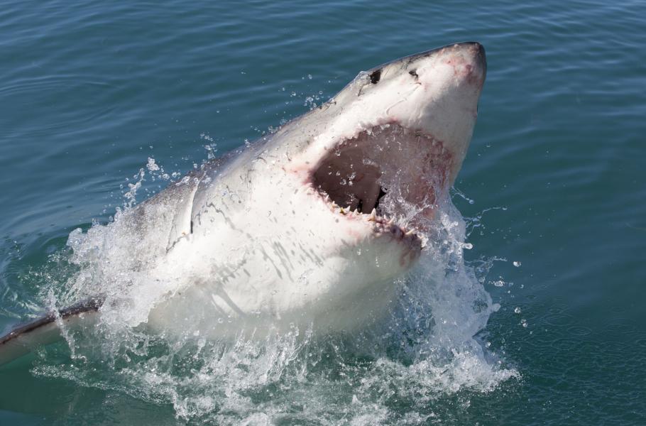 Na základě současných poznatků disponoval možná nejsilnějším čelistním stiskem obří třetihorní žralok Carcharodon megalodon. Tento obr obýval teplejší oceány v době před 16 až 1,5 milionem let a dosahoval délky přes 15 metrů. Jeho čelisti se mohly rozevřít až na výšku dospělého muže a byly plné zubů o délce téměř 20 centimetrů. Jeho hmotnost zřejmě přesáhla 50 tun, jedná se tedy o největšího dravého žraloka, jakého věda zná. Dle výpočtů mohla síla stisku jeho čelistí dosáhnout fantastických hodnot 108 500 až 182 200 Newtonů! Obří žralok tedy kousal s třikrát větší silou než tyranosaurus, čtyřicetkrát vyšší silou než hyena a asi dvěstěkrát intenzivněji než člověk.