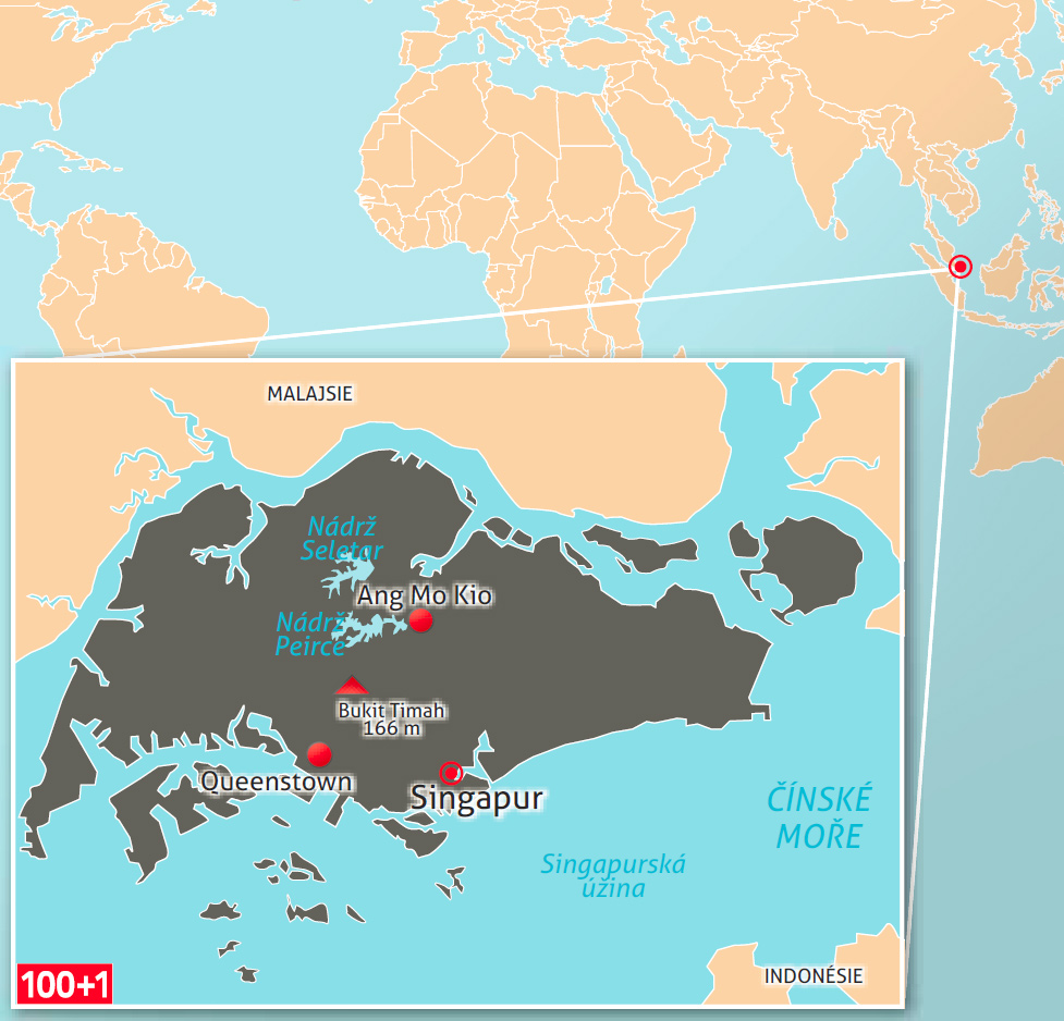 Nejvyšší a nejnižší bod: Singapurská úžina 0 m, Bukit Timah 166 m